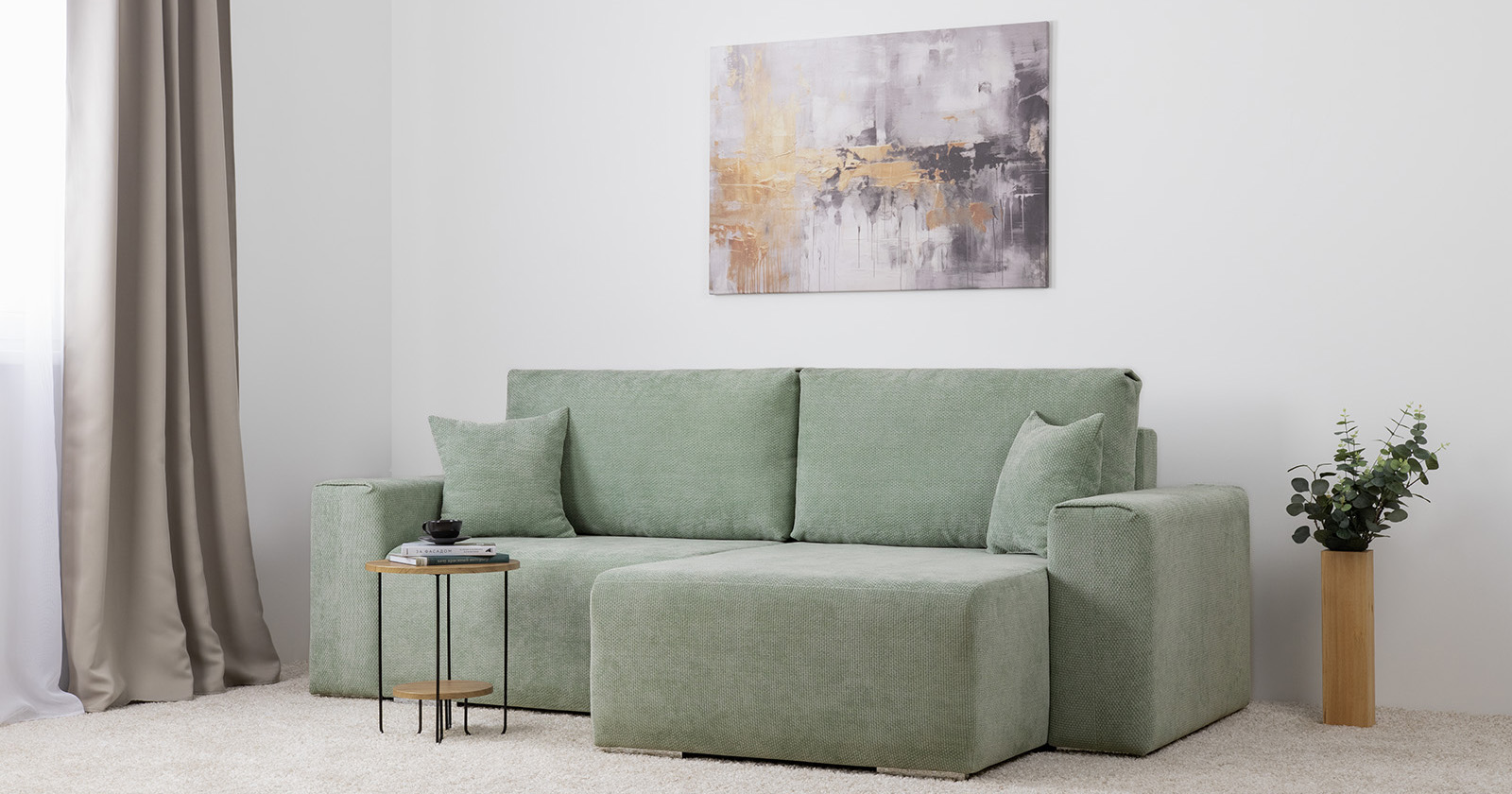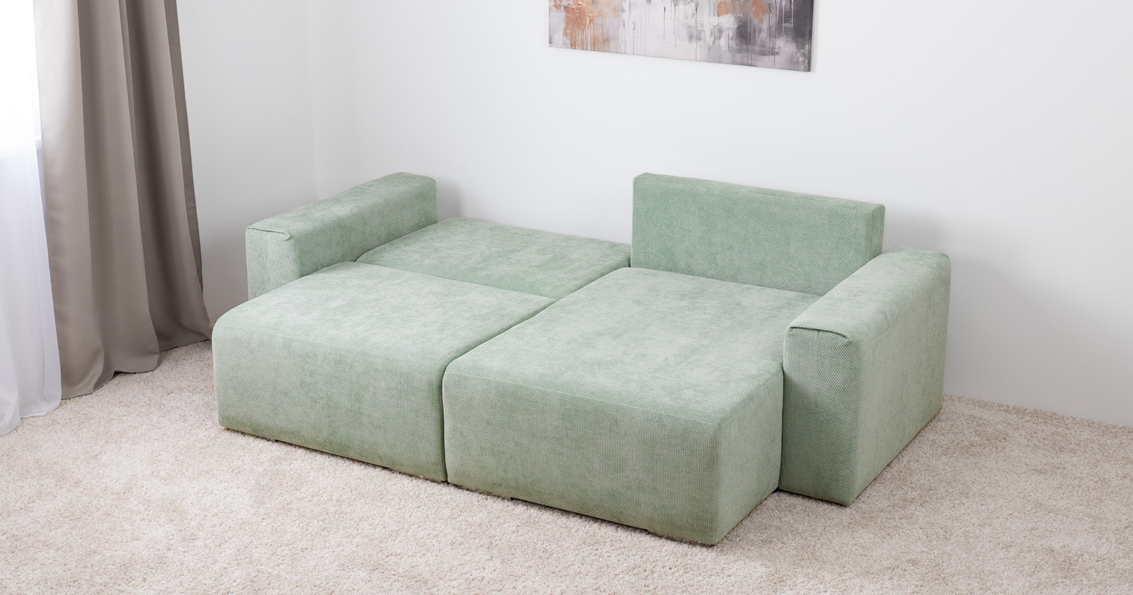 Диван-кровать угловой Оксфорд 715 композиция 2, STORM 9 мятный, модульная система, сборка на любую сторону