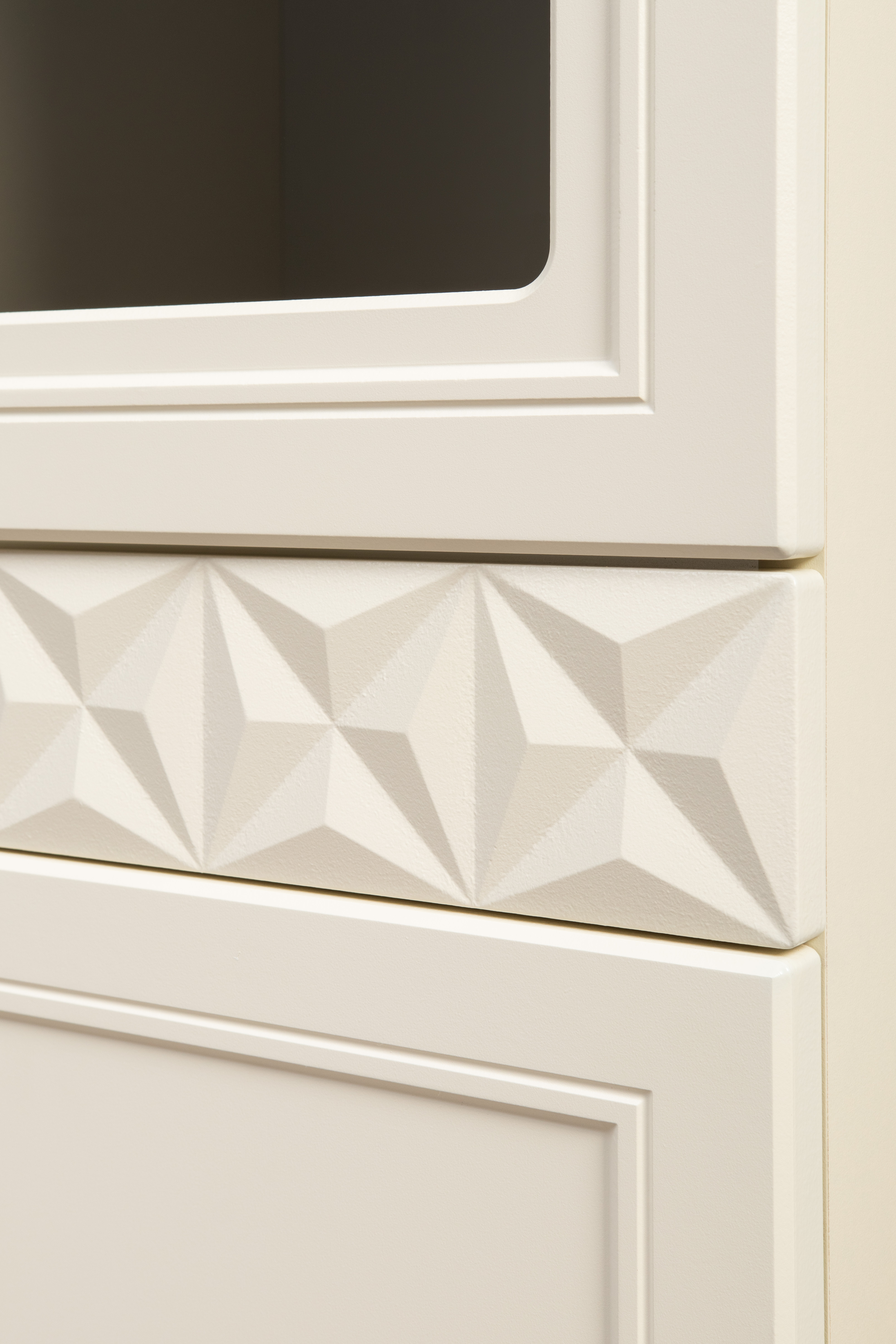 Гостиная Марион композиция 3 слоновая кость С341 PE, слоновая кость 6898 ПВХ, белый PE шагрень (собирается на любую сторону)
