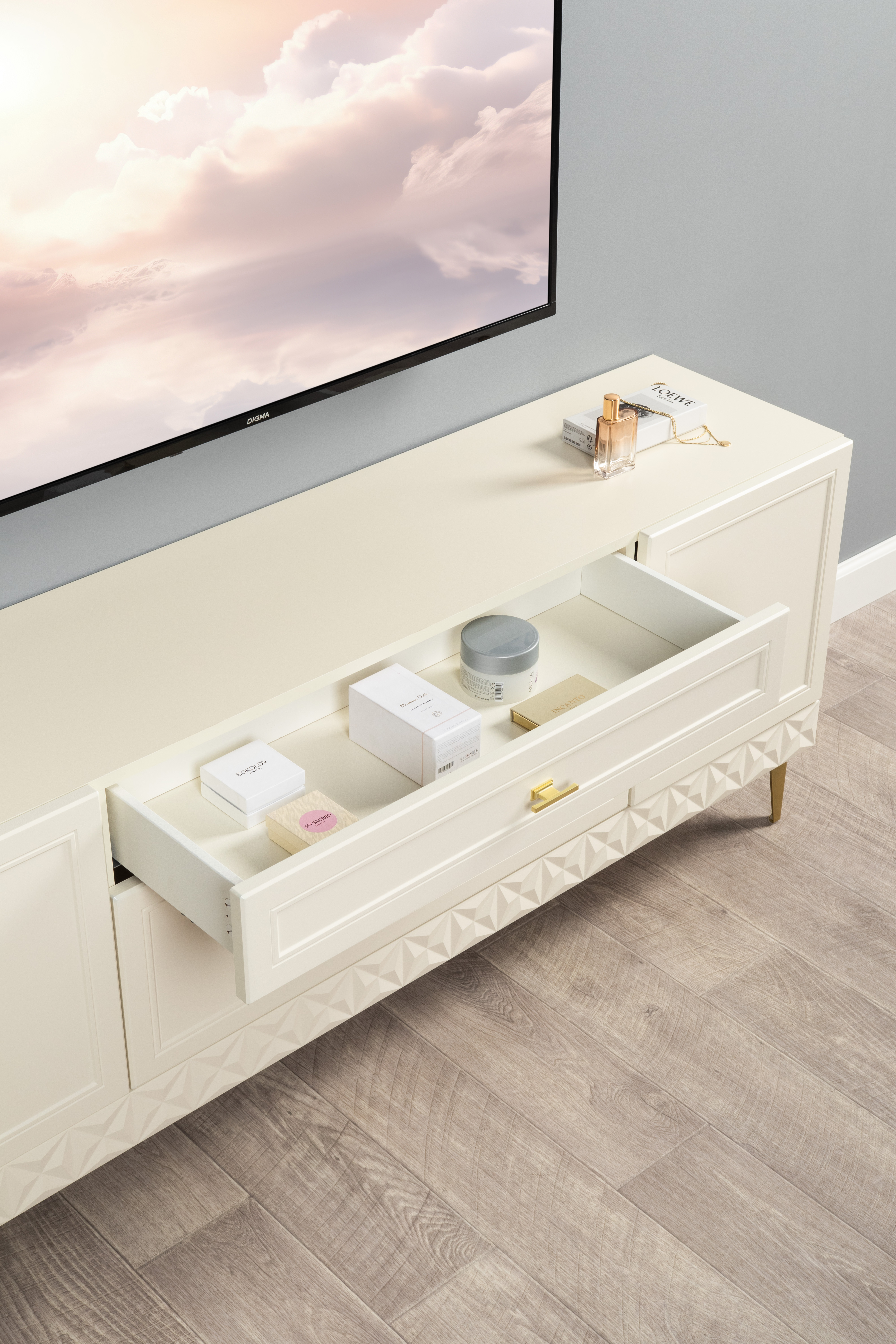 Комод Марион 16.249 слоновая кость С341 PE, слоновая кость 6898 ПВХ, белый PE шагрень