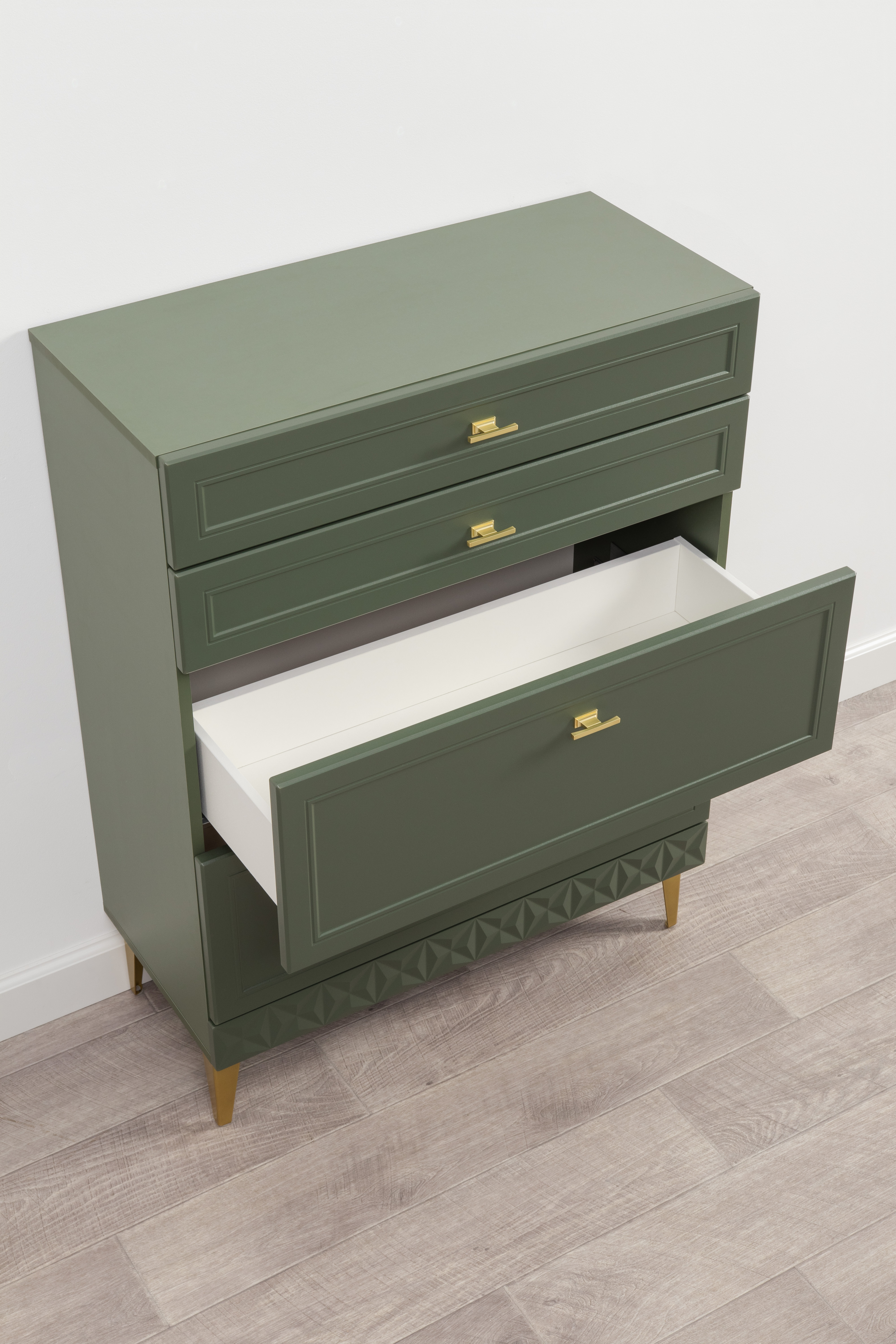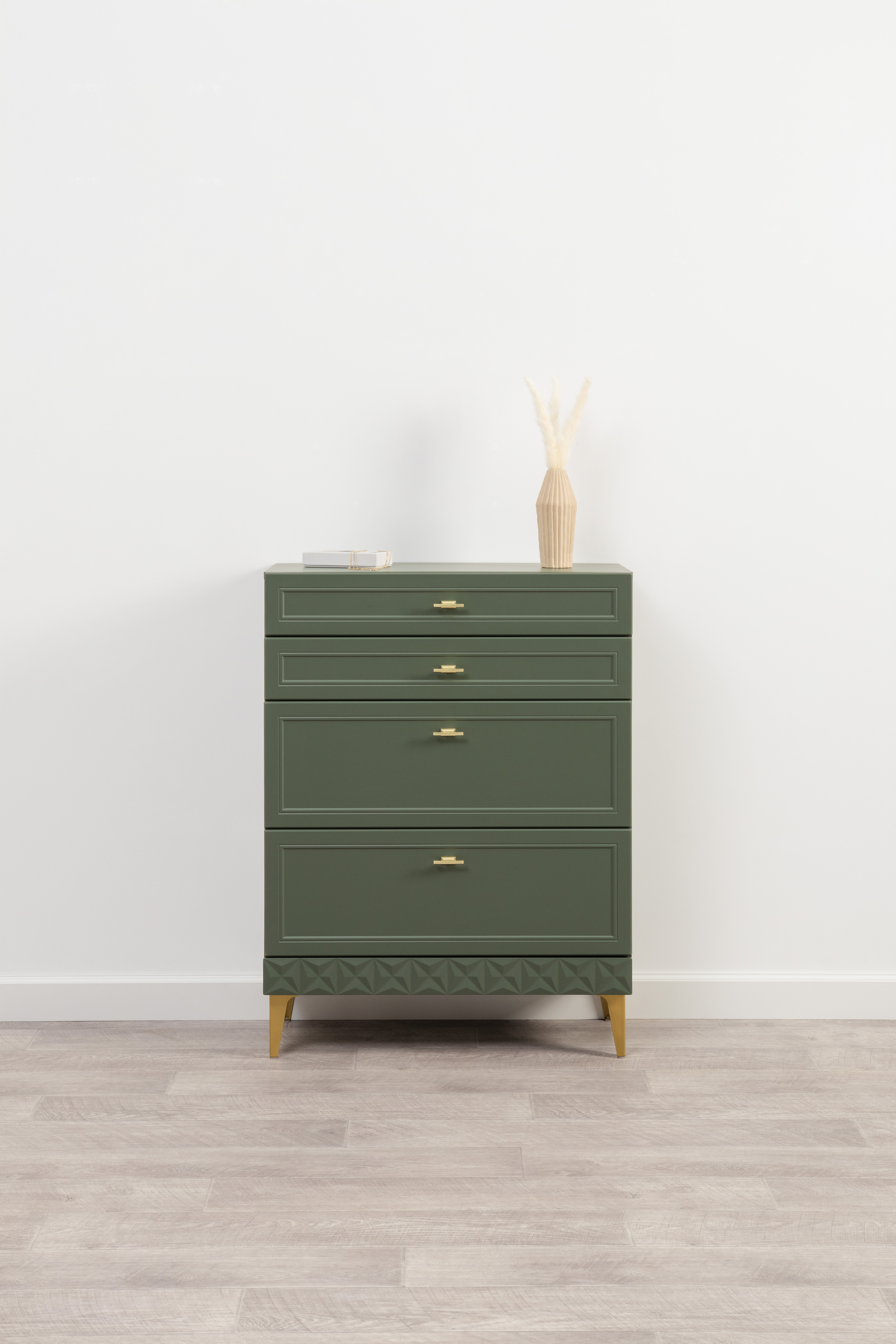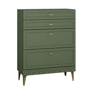 Комод Марион 16.249 дымчатый зеленый K521, олива шагрень AG 1050 ПВХ, белый PE шагрень