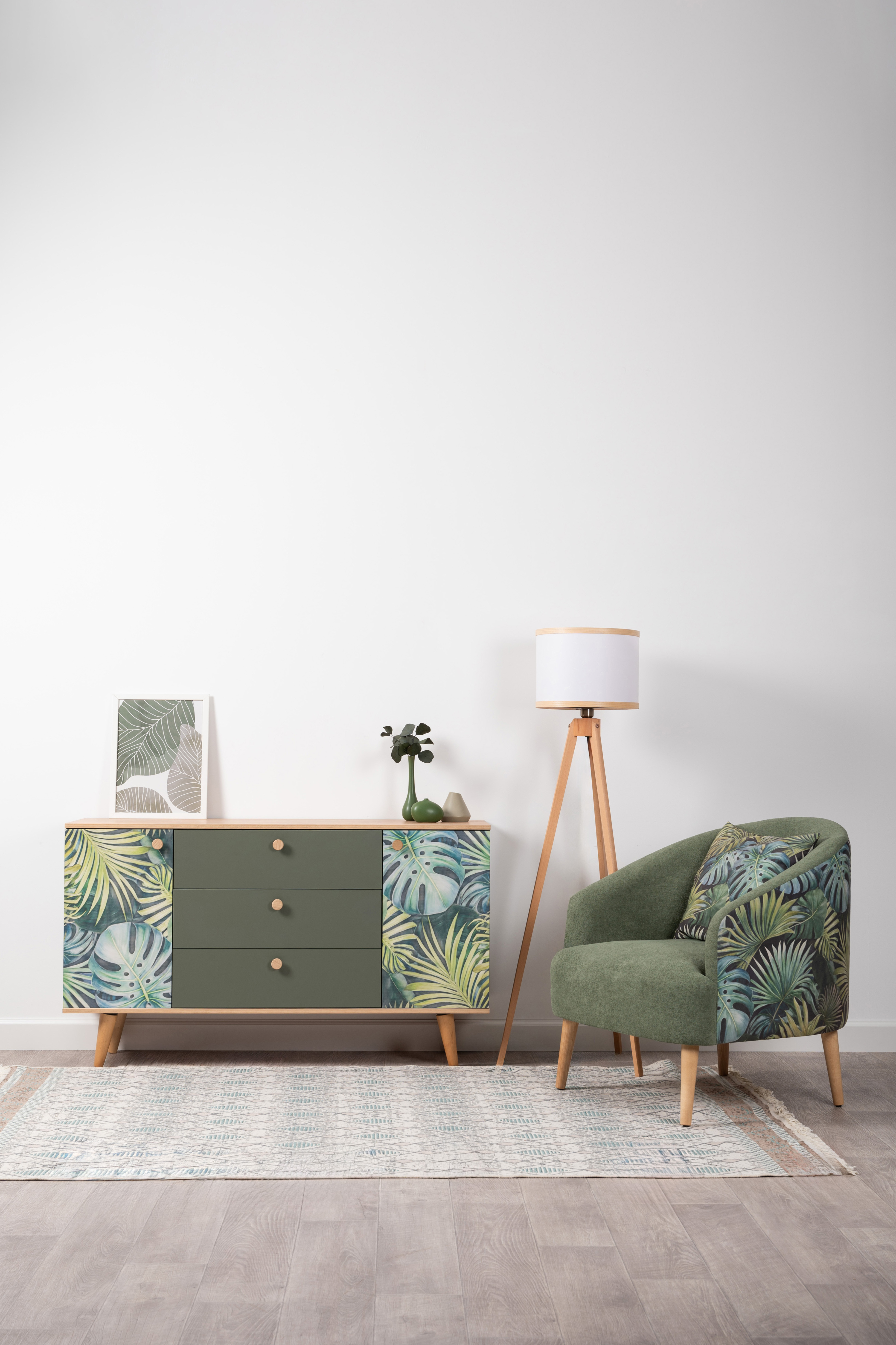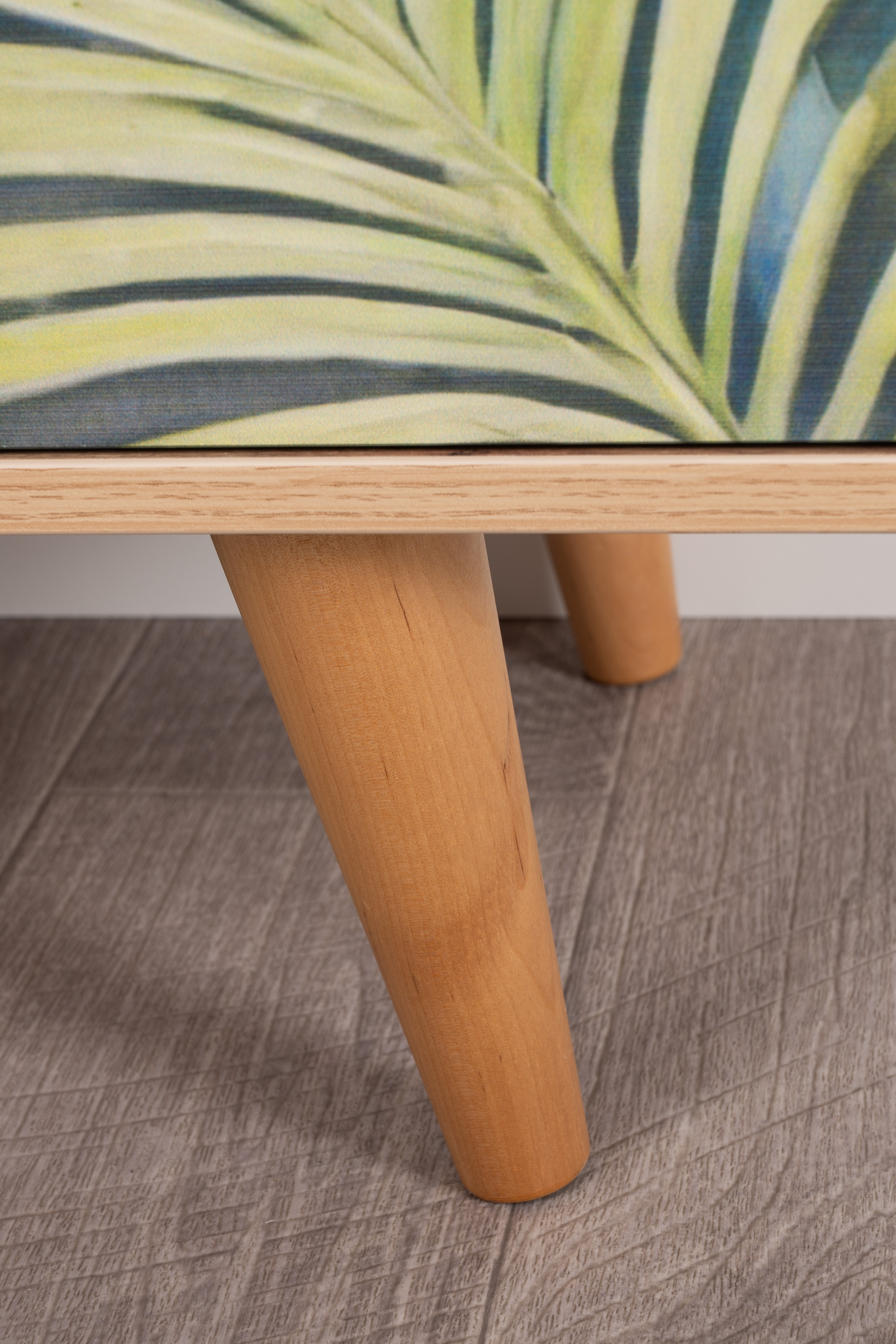 Маттиас – яркий комод с фотопечатью в тропическом стиле. Деревянные ручки и опоры подчеркивают естественность дизайна, а шариковые направляющие полного выдвижения и петли с доводчиком обеспечивают плавность и удобство эксплуатации.