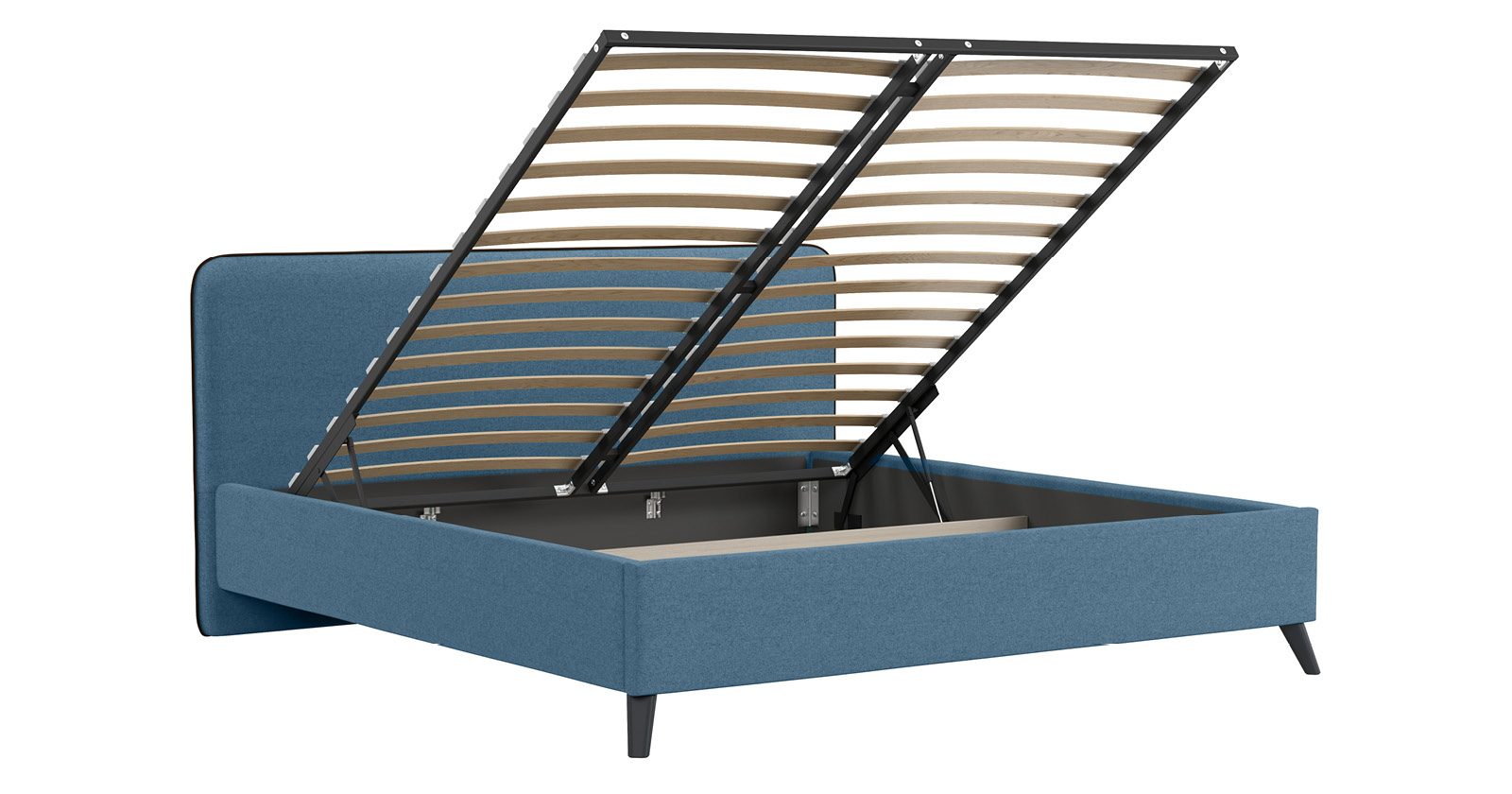 Основание кровати укомплектовано матрасодержателями. Жесткое кроватное дно из МДФ 6 мм. Задняя стенка изголовья выполнена в тех. ткани (спанбонд).