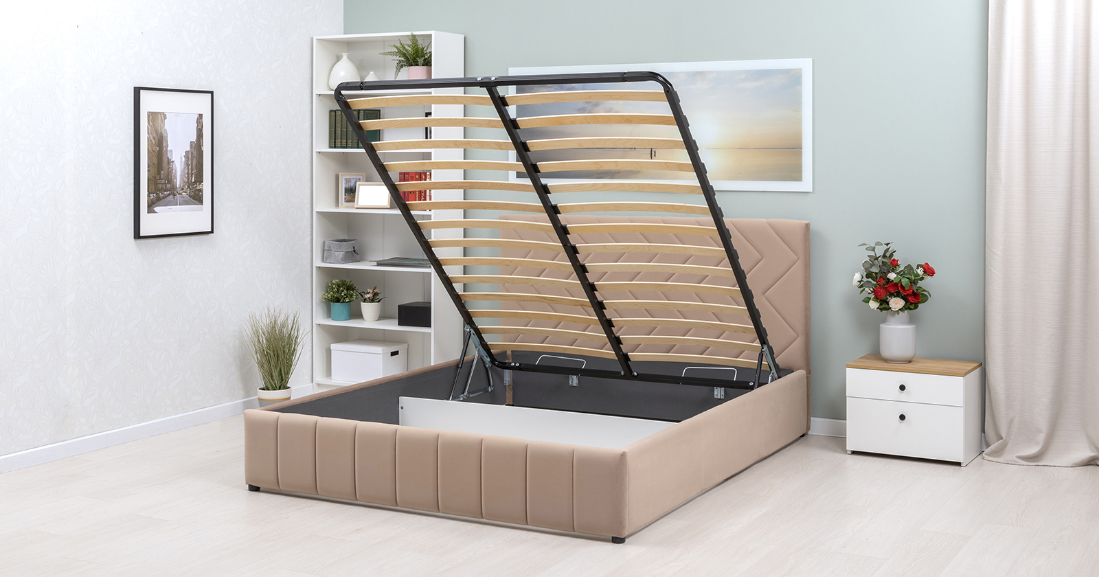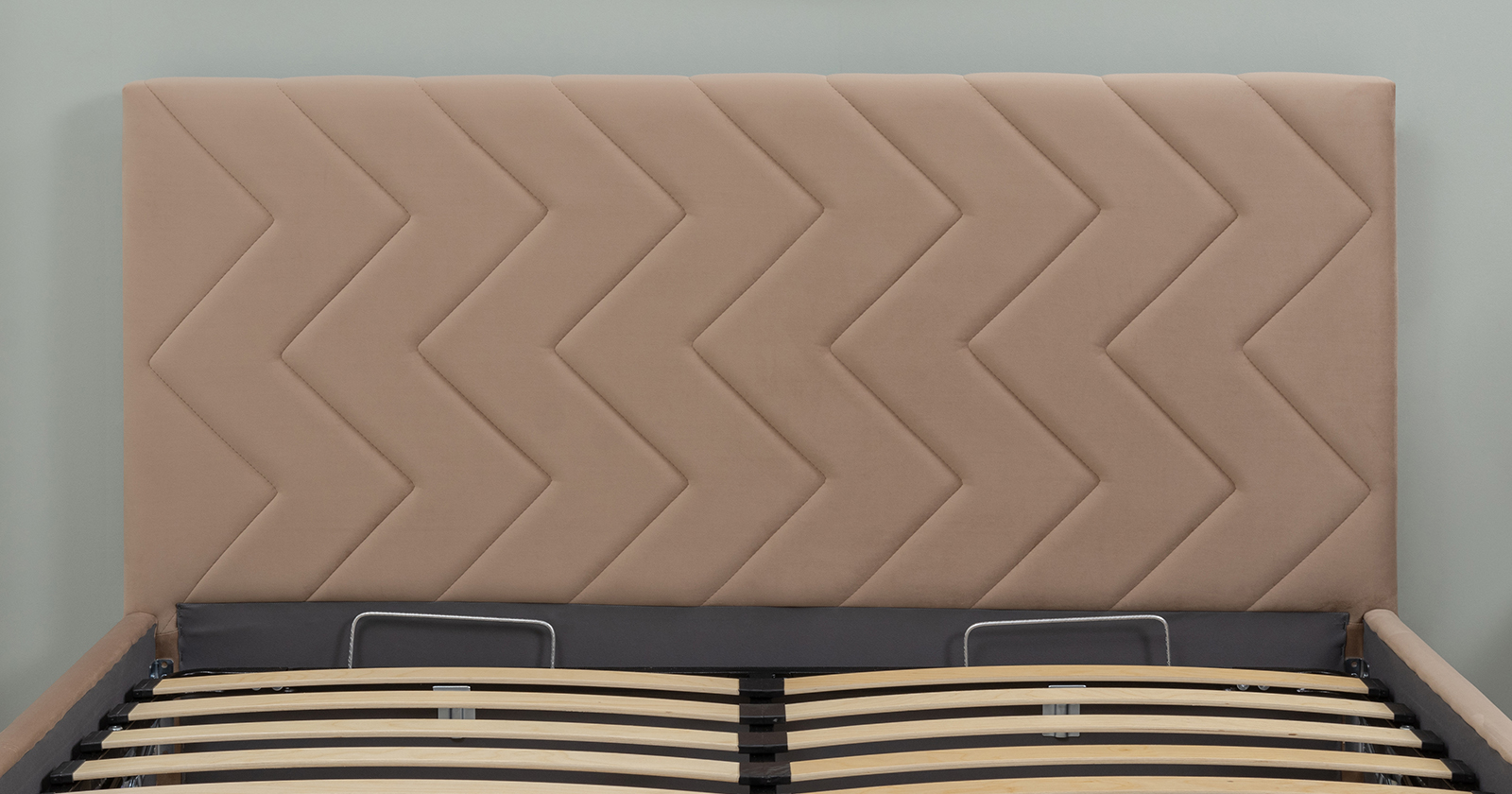 Кровать Милана 160 велюр бежевый кофейный с ортопедическим основанием и подъемным механизмом