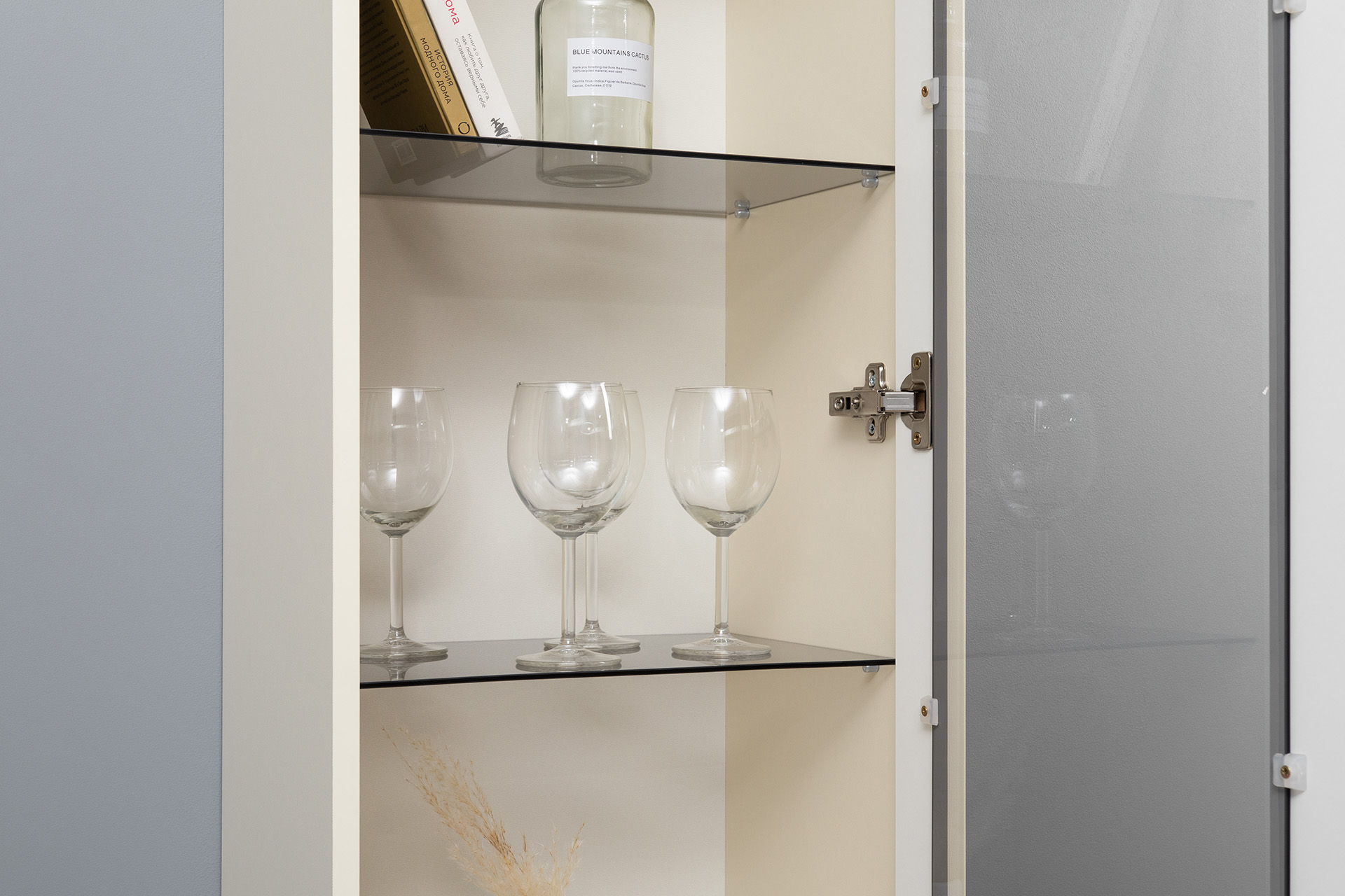 Шкаф-витрина Марион 16.397.01 слоновая кость С341 PE, слоновая кость 6898 ПВХ (собирается на любую сторону)