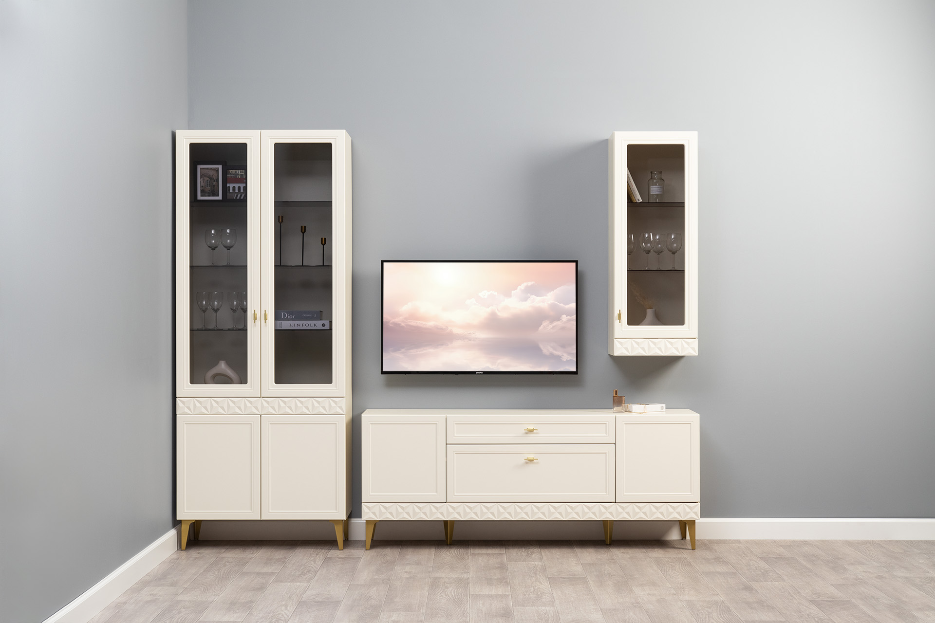 Шкаф навесной в гостиную Бэль 10.63 белый премиум, дуб золотой CRAFT
