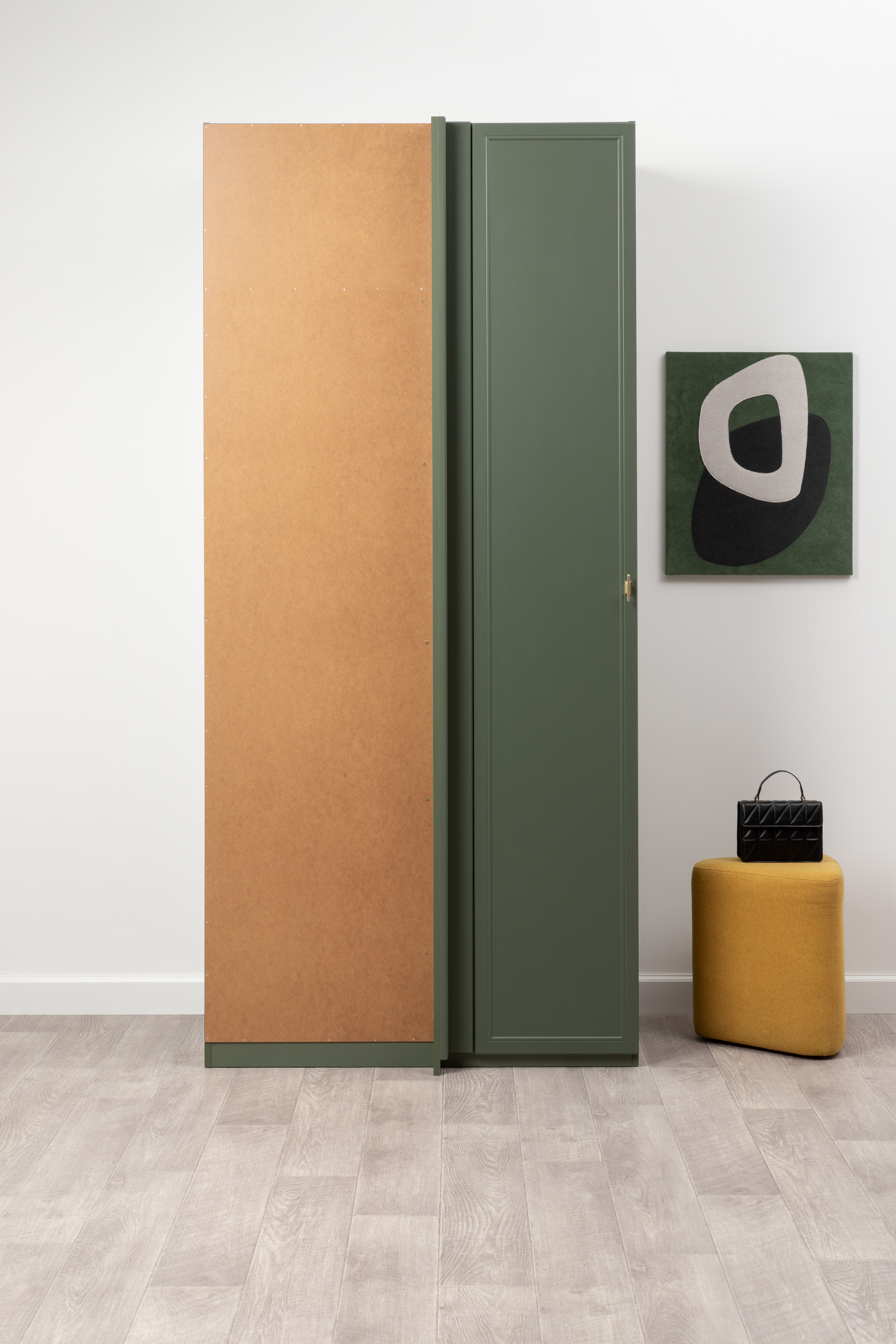 Шкаф угловой Марион 16.339 дымчатый зеленый K521, олива шагрень AG 1050 ПВХ (собирается на любую сторону)